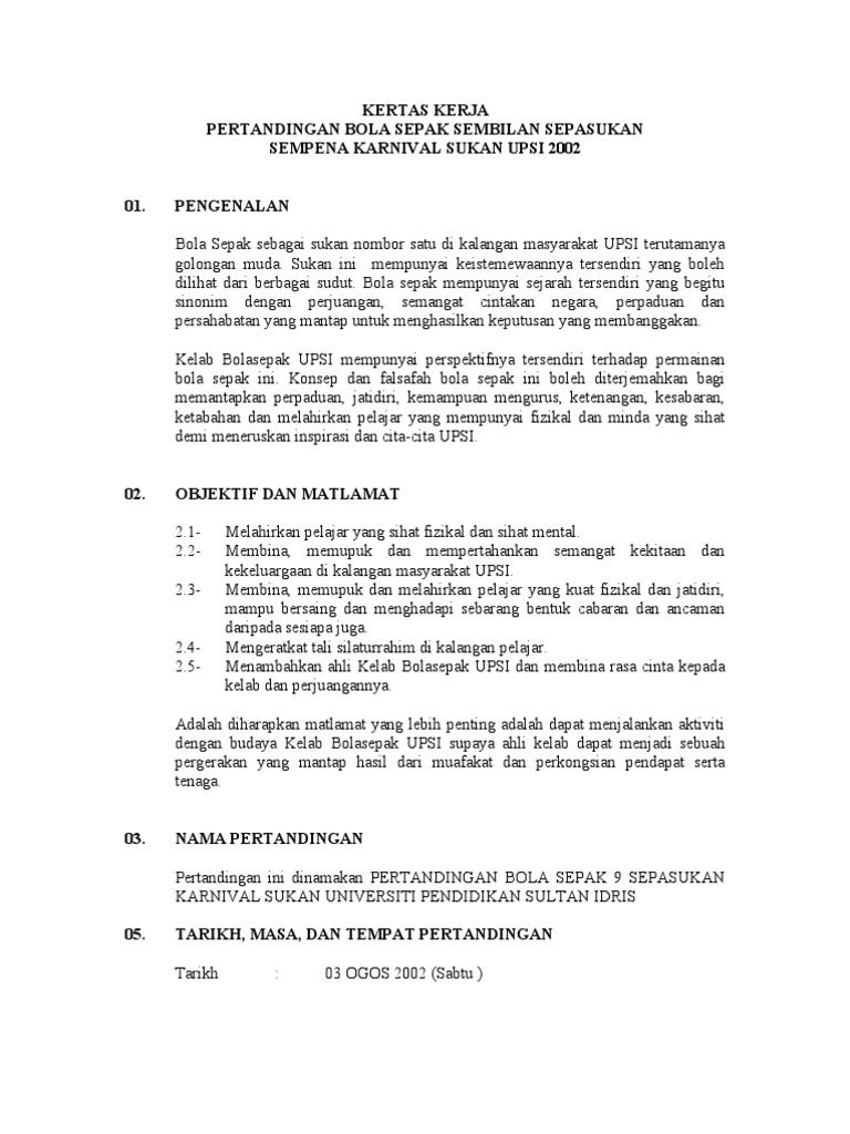 Saya akan menyampaikan sebuah cerita yang bertajuk singa yang. Save Save Kertas Kerja Sepak Takrawdoc For Later. Contoh kertas kerja pertandingan bola sepak.